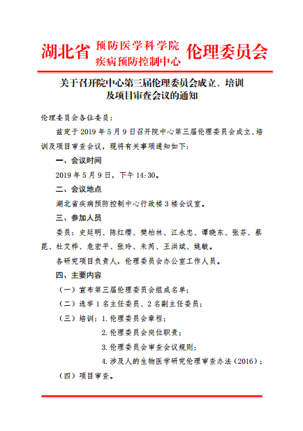 關于召開院中心第三屆倫理委員會成立、培訓及項目審查會議的通知