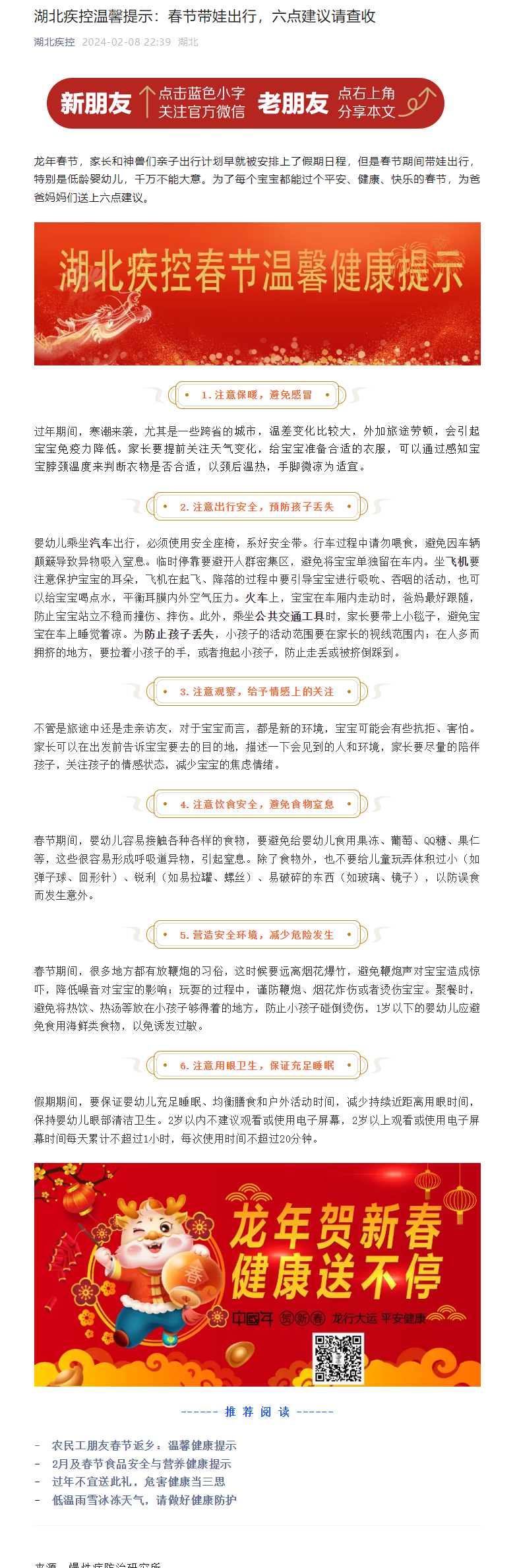 湖北疾控溫馨提示:春節(jié)帶娃出行,六點(diǎn)建議請(qǐng)查收