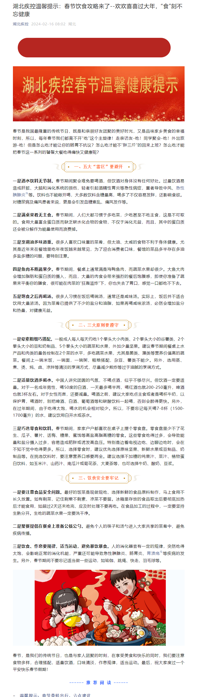 湖北疾控溫馨提示:春節飲食攻略來了--歡歡喜喜過大年,“食”刻不忘健康