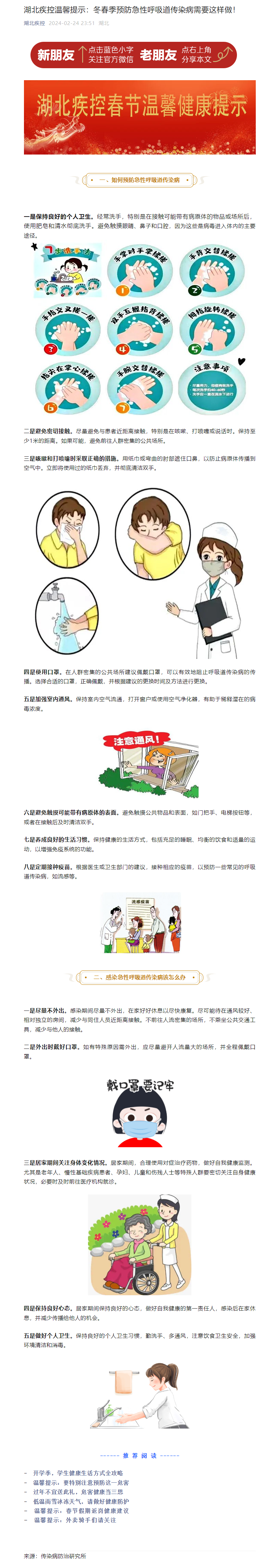 湖北疾控溫馨提示:冬春季預防急性呼吸道傳染病需要這樣做!
