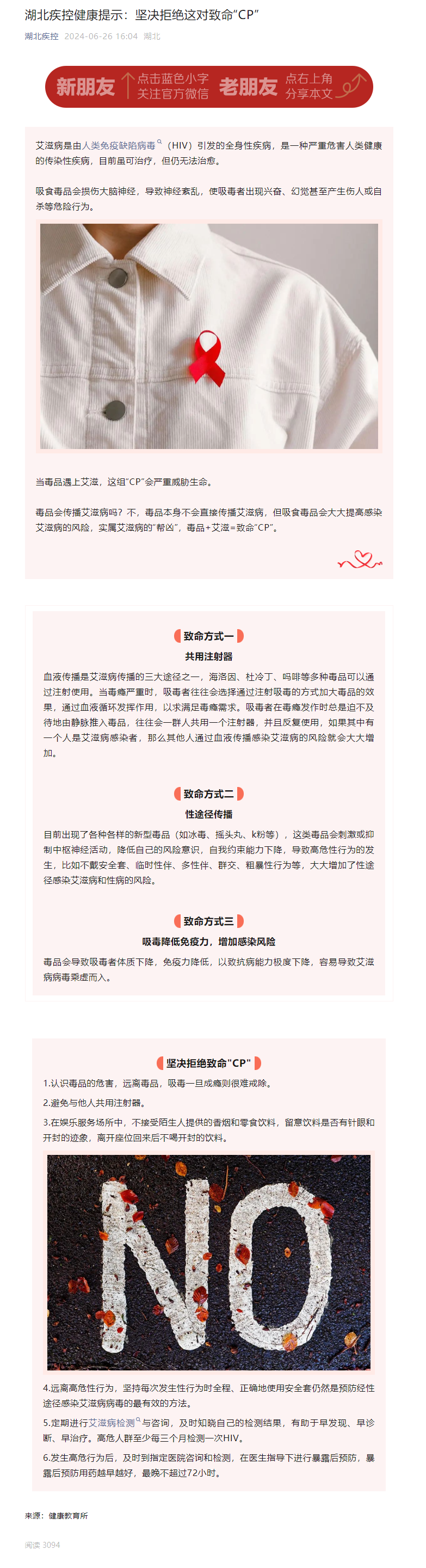 湖北疾控健康提示:堅決拒絕這對致命“CP”