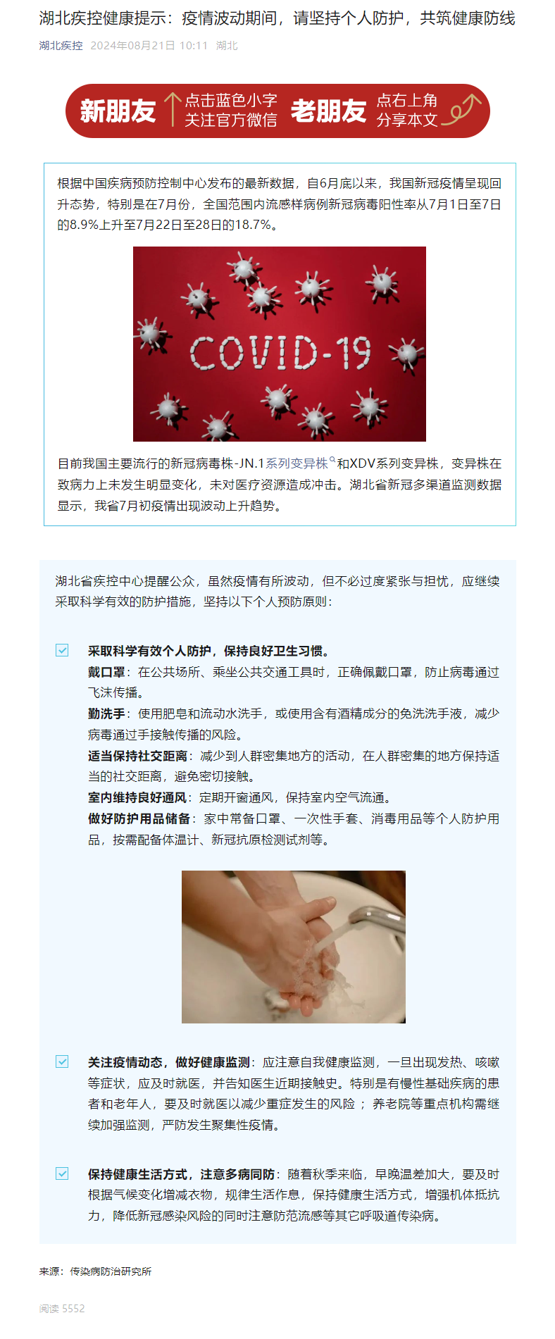湖北疾控健康提示:疫情波動期間,請堅持個人防護,共筑健康防線