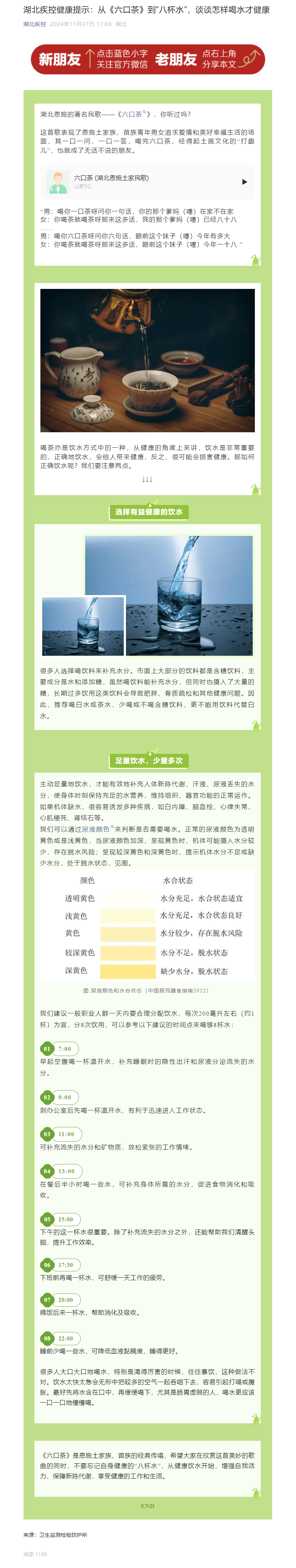 湖北疾控健康提示:從《六口茶》到“八杯水”,談談怎樣喝水才健康