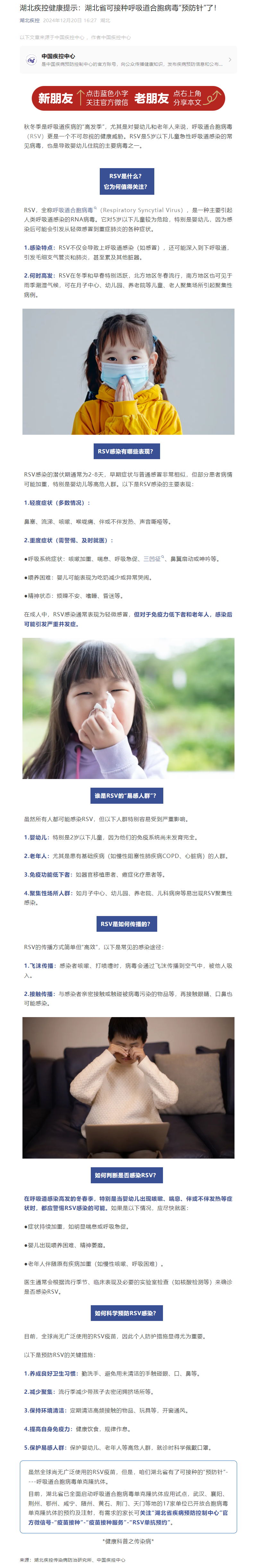 湖北疾控健康提示:湖北省可接種呼吸道合胞病毒“預(yù)防針”了!