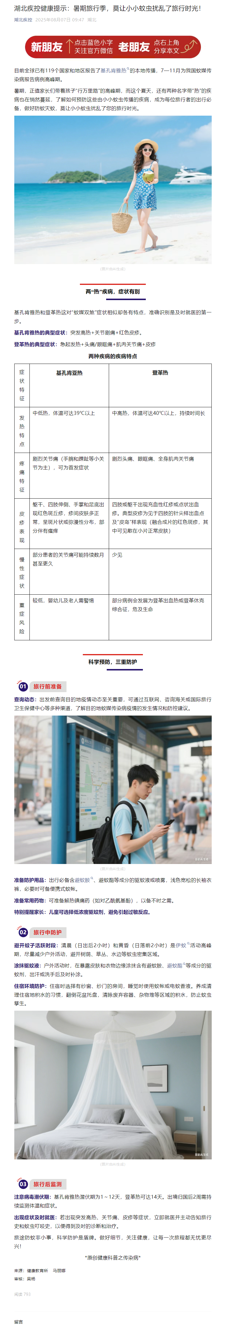 湖北疾控健康提示:暑期旅行季,莫讓小小蚊蟲擾亂了旅行時光!