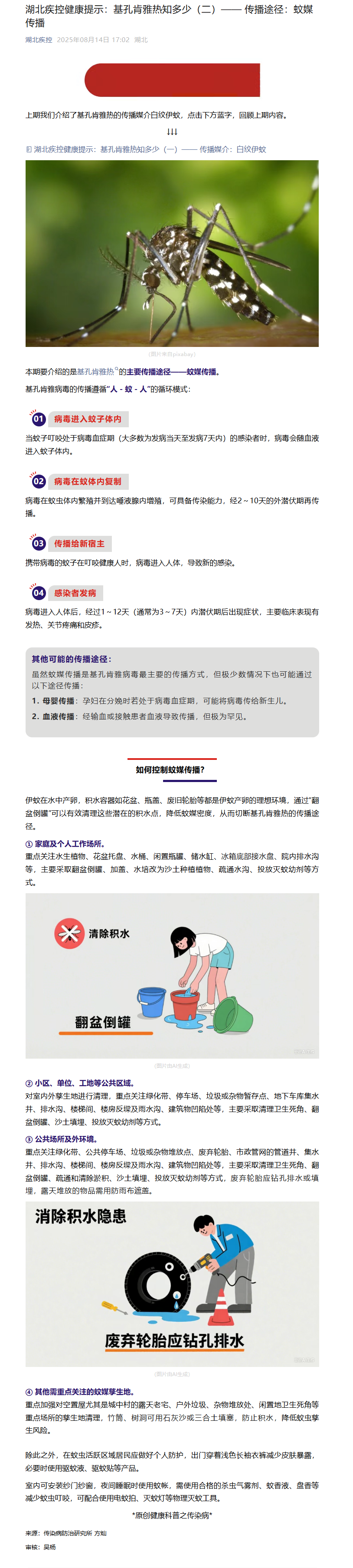 湖北疾控健康提示:基孔肯雅熱知多少(二)—— 傳播途徑:蚊媒傳播