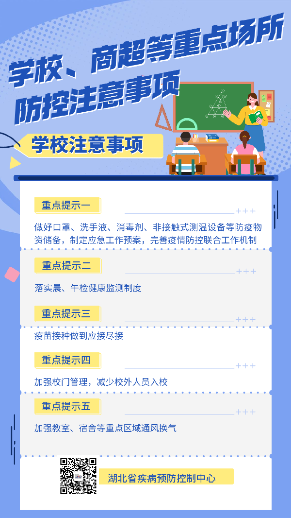 湖北疾控專家提醒:學校、商超等重點場所防控注意事項