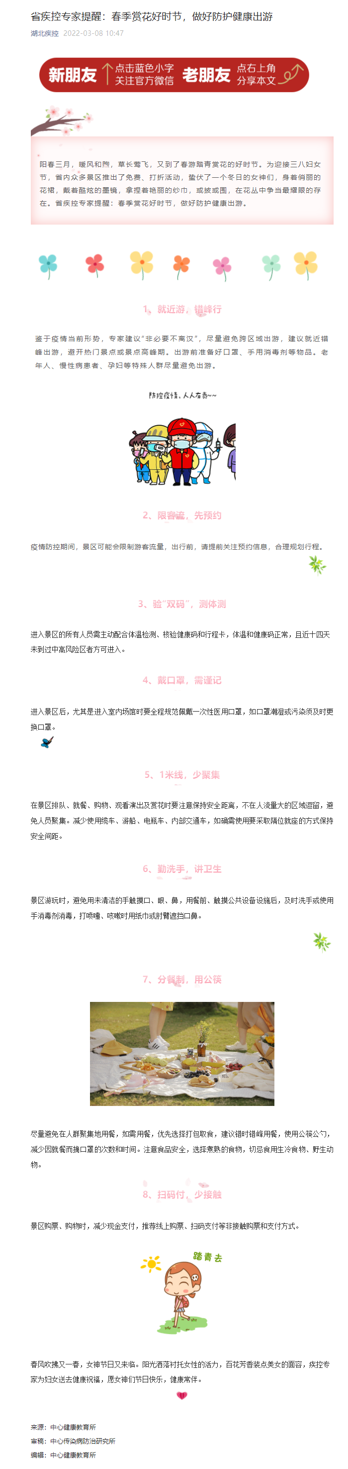 省疾控專家提醒:春季賞花好時節,做好防護健康出游