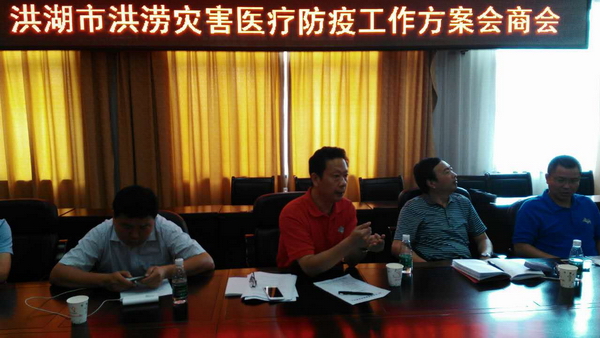 7月11日,荊州市疾控中心黨委書記、主任廖強帶領由傳染病防疫、血吸蟲病防疫、消殺、飲用水安全等6名專家組成的第一梯隊帶著消殺藥械趕赴洪湖。到達災區(qū)后,立即召開了洪湖抗洪救災防病緊急會議,指導成立應急救援領導小組、應急工作專班、救援隊,研究部署救援方案。