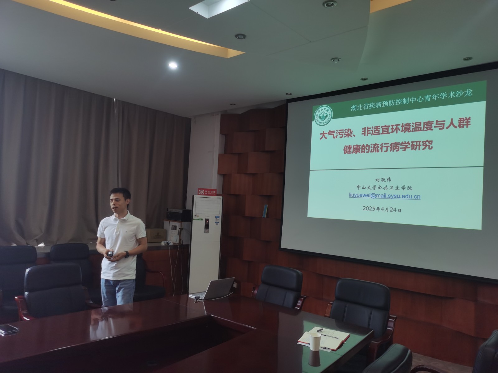 2025年4月24日,衛監所團支部在行政樓三樓會議室舉辦了第四期青年科研沙龍活動,特別邀請中山大學公共衛生學院劉躍偉副教授蒞臨開展講座。