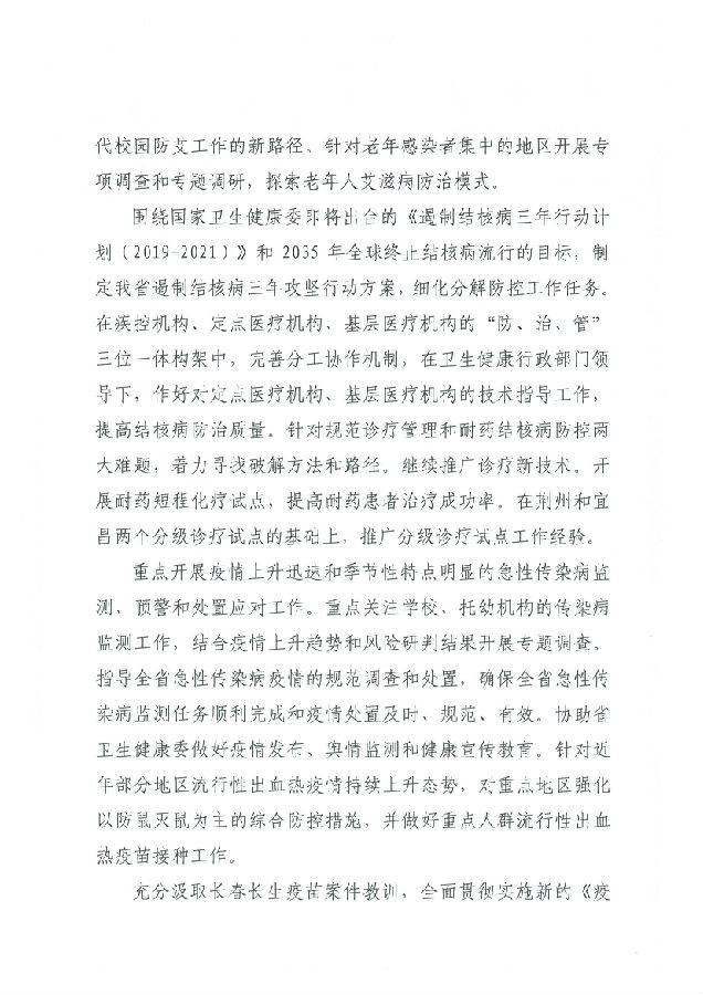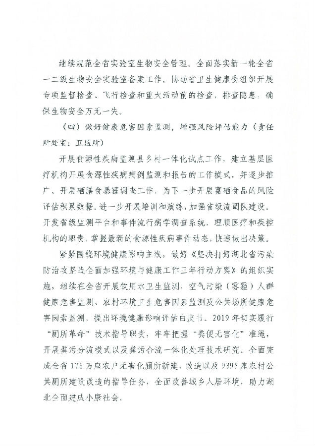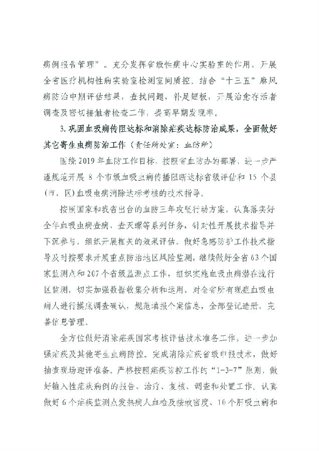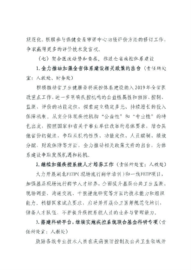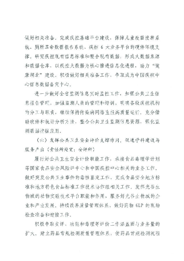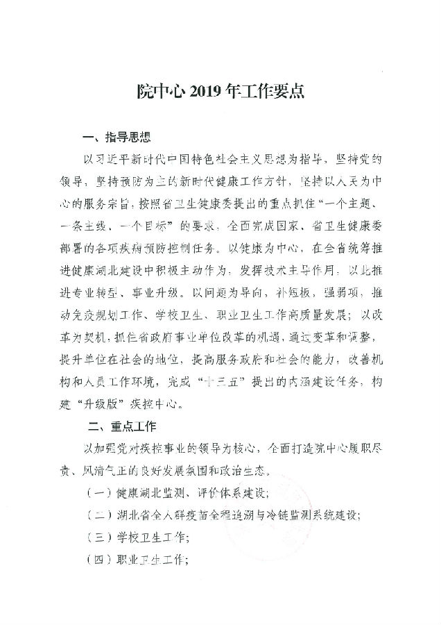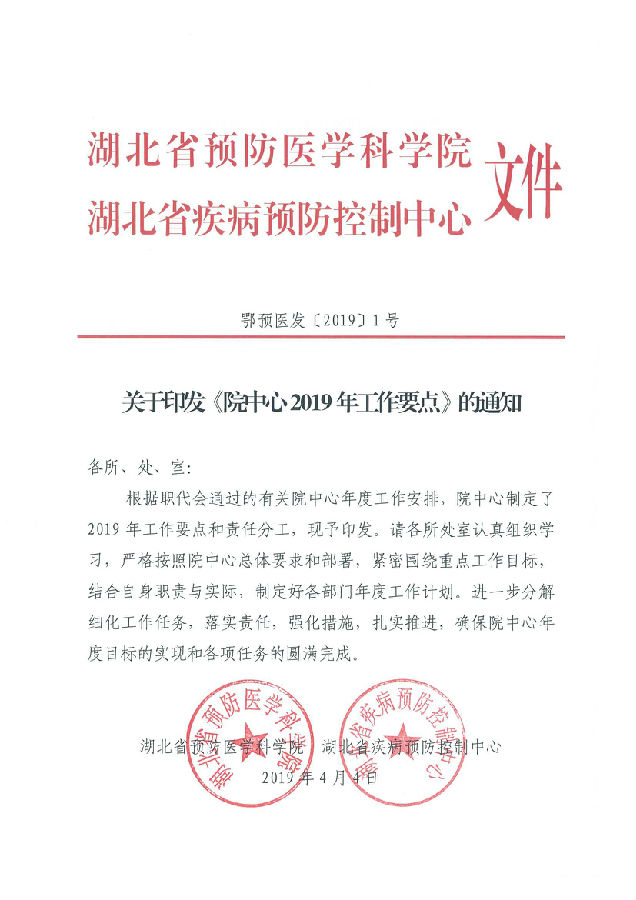 湖北省預防醫學科學院 湖北省疾病預防控制中心2019年工作計劃
