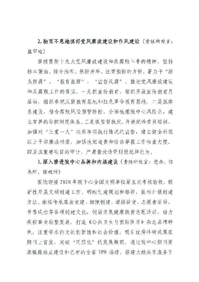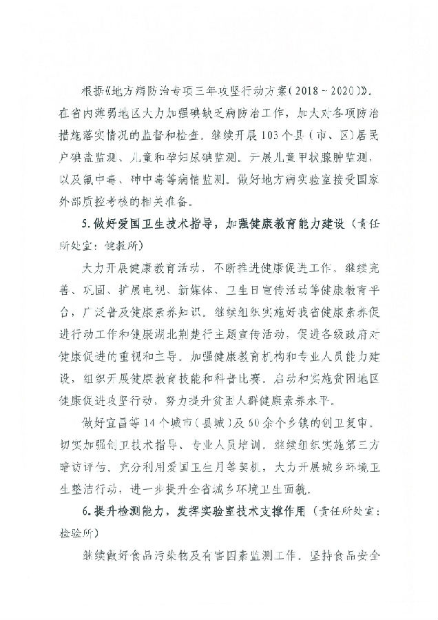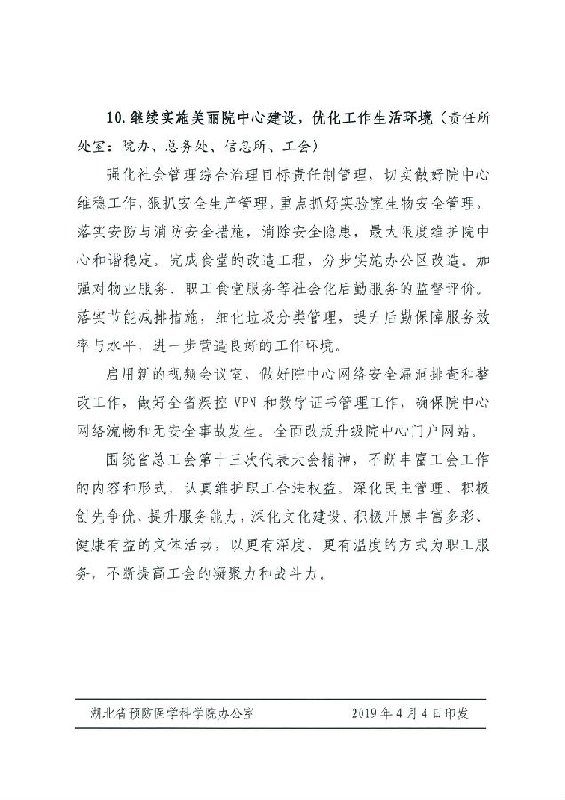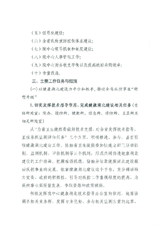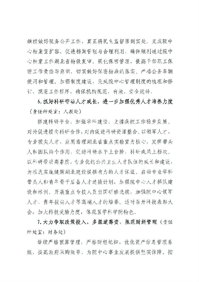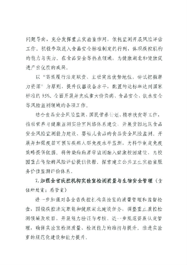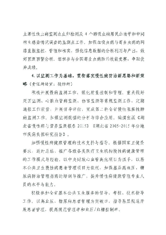湖北省預防醫學科學院 湖北省疾病預防控制中心2019年工作計劃