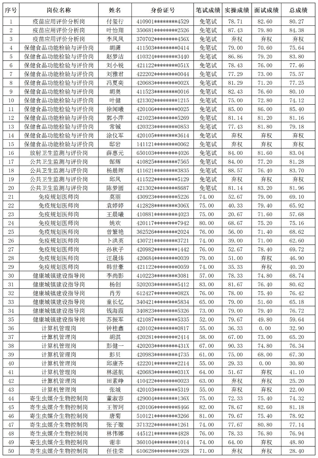 根據《湖北省疾病預防控制中心2025年面向社會專項公開招聘工作人員公告》相關要求,現將湖北省疾病預防控制中心2025年專項公開招聘總成績予以發布。