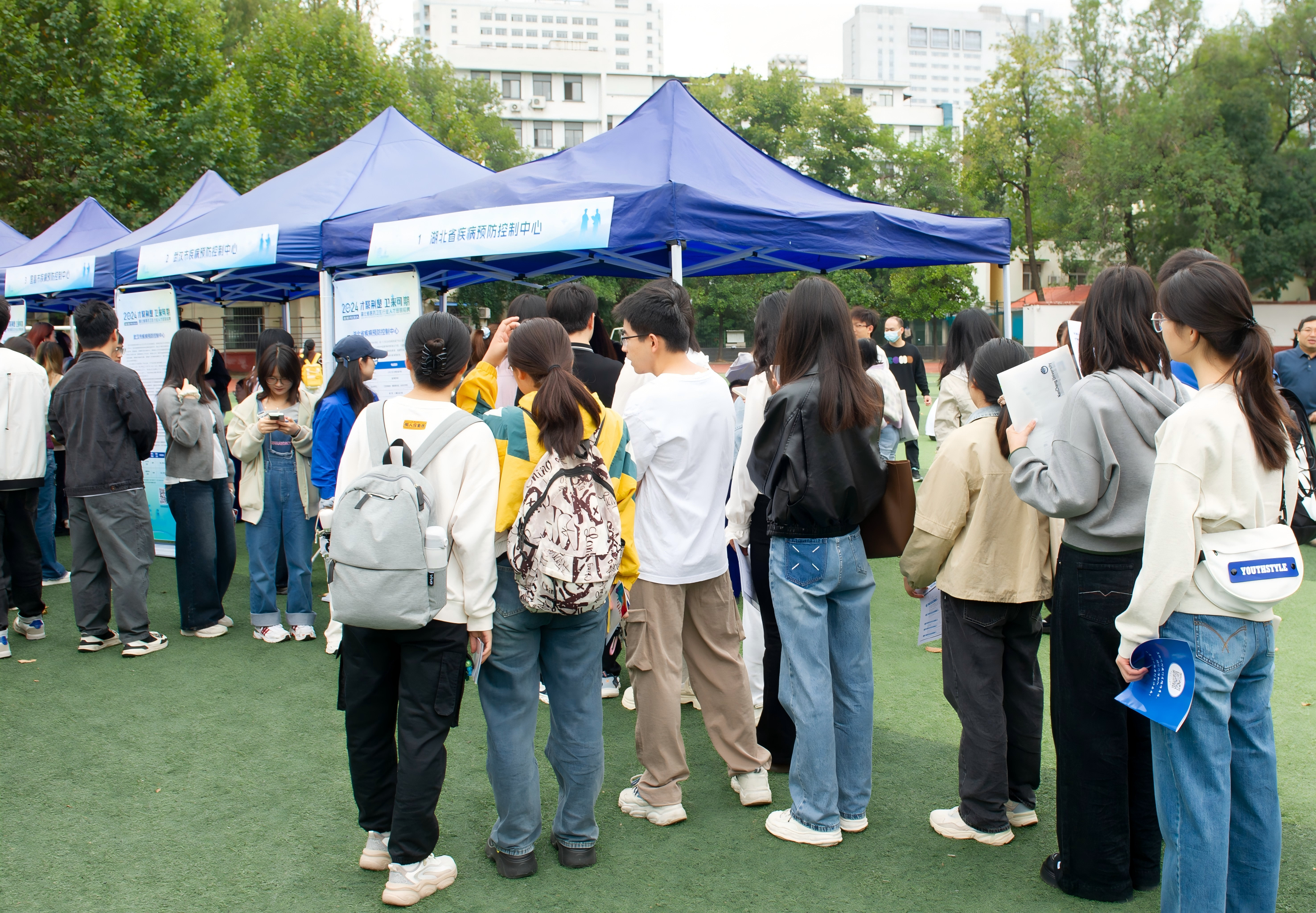 10月19日上午,由省衛生健康委員會、省疾病預防控制局聯合主辦的“才聚荊楚·衛來可期”2024年湖北省醫藥衛生行業人才巡回招聘會在華中科技大學同濟醫學院舉行。我中心參加了本次活動。本屆招聘活動是針對應、往屆醫學類畢業生舉辦的湖北省醫藥衛生行業人才巡回招聘活動的首場活動。