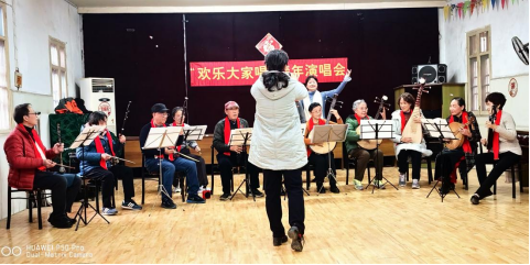 聯(lián)歡會在器樂合奏《金蛇狂舞》、《喜洋洋》、《洪水浪打浪》的悠揚(yáng)樂曲中拉開序幕。