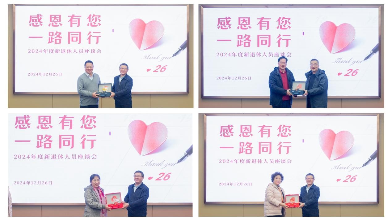 最后,黨委書記朱洪波同志和中心(院)副主任李陽同志向退休人員頒發了“榮休紀念”紀念杯,并共同合影留念,記錄這一難忘的時刻。