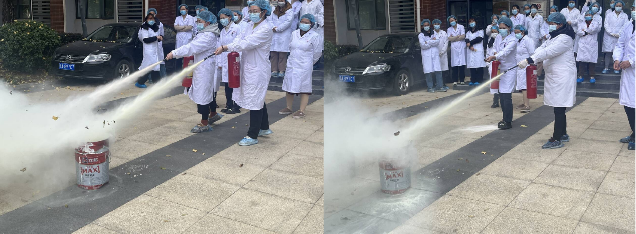 應急疏散演練結束后,由消防維保部專員胡圣乾為安評中心全體職工講解室內消防栓和滅火器的使用細則及注意事項,最后在A棟一樓室外設立火災小現場,開展滅火器使用實踐操作,2023年度安評所新進職工有序手持滅火器,進行了實踐操作。