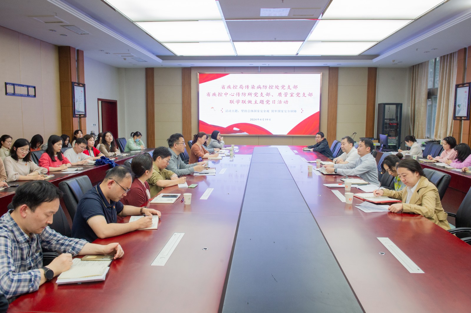 為堅(jiān)持總體國(guó)家安全觀,筑牢國(guó)家安全屏障,2024年4月19日,省疾控局傳染病防控處黨支部與省疾控中心傳防所黨支部、質(zhì)管室黨支部開展了聯(lián)學(xué)聯(lián)做主題黨日活動(dòng)。省疾控局黨組成員/副局長(zhǎng)彭旭參加了此次黨日活動(dòng),活動(dòng)由省疾控中心傳防所黨支部副書記蔣洪林主持。
