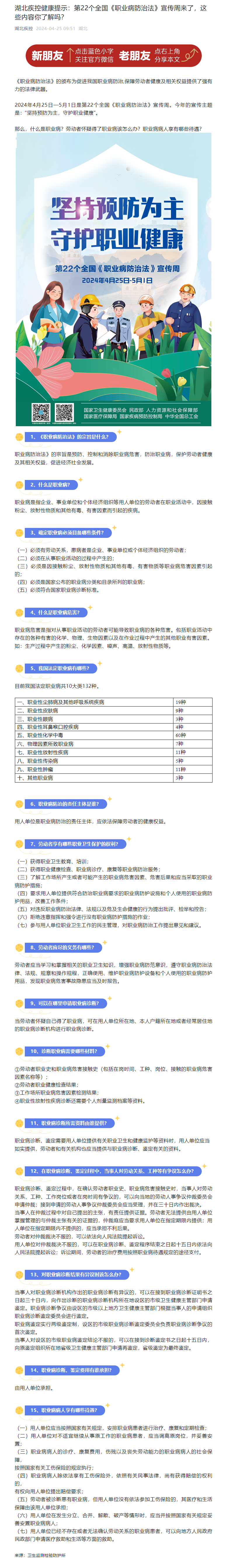 湖北疾控健康提示:第22個全國《職業病防治法》宣傳周來了,這些內容你了解嗎?